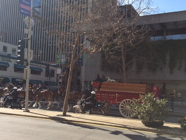 We walked down the street & the first thing we saw was the Budweiser Clydesdales...with a police escort!
